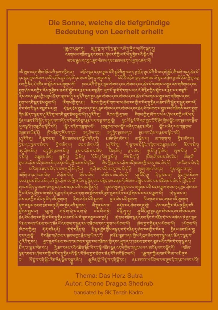 Chone Lama Dragpa Shedrub war ein Gelehrter des 18. Jahrhunderts vom Großen Kloster von Chone, welches Der Freudvolle Ort der Erklärung und Realisation1 genannt wird. Sein Kommentar über das Herz Sutra mit dem Titel Die Sonne, welche die tiefgründige Bedeutung von Leerheit erhellt erklärt die Bedeutung von jedem Satz des Herz Sutras von Anfang bis Ende.