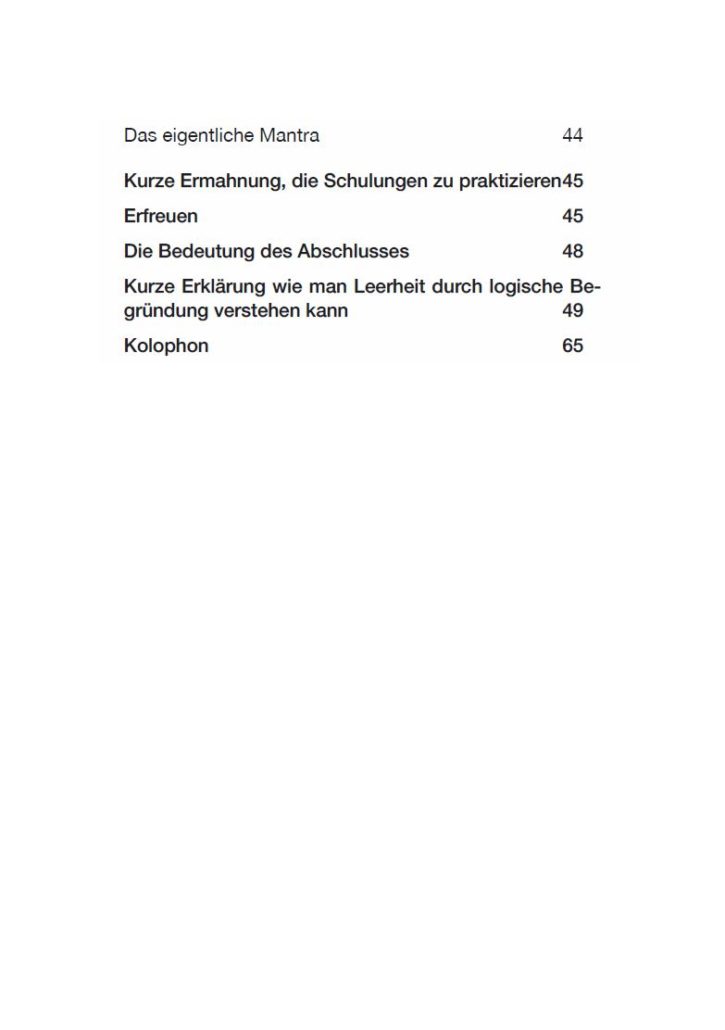 Zumindest im Tibetischen besticht der Kommentar durch seine Einfachheit, Klarheit und Vollständigkeit. Besonderes Augenmerk hat der Autor auf die Erklärung des Herz Sutras und die zusätzliche kurze Beschreibung, wie man auf Leerheit meditiert gelegt. Ich hoffe, dass meine Übersetzung wenigstens einen Hauch der Klarheit, die die tibetische Version auszeichnet, besitzt. Nur gelegentlich habe ich mir die Freiheit genommen, die Gestaltung der Gliederung zu ändern, indem ich eine Gliederung hinzugefügt oder die Abfolge der Sätze geändert habe, um den Text für den westlichen Leser angenehmer zu formulieren.