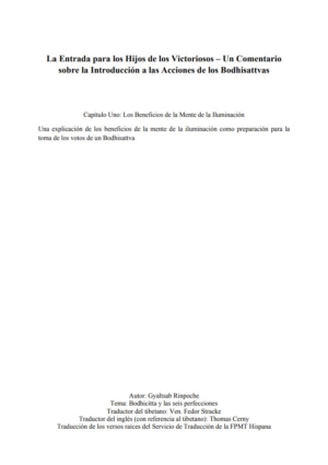 “Subhuti, haber meramente tomado un verso de cuatro líneas de esta enumeración de Dharma y luego enseñarla perfectamente a los demás, mostrándola perfecta y claramente a los demás – meramente esto crea más mérito de Dharma, ilimitado, cuyo renombre trasciende, que ofrecer todos los reinos de los mundos encontrados, repletos de las siete joyas preciosas, a todos los perfectamente iluminados budas, así idos, destructores del enemigo.“